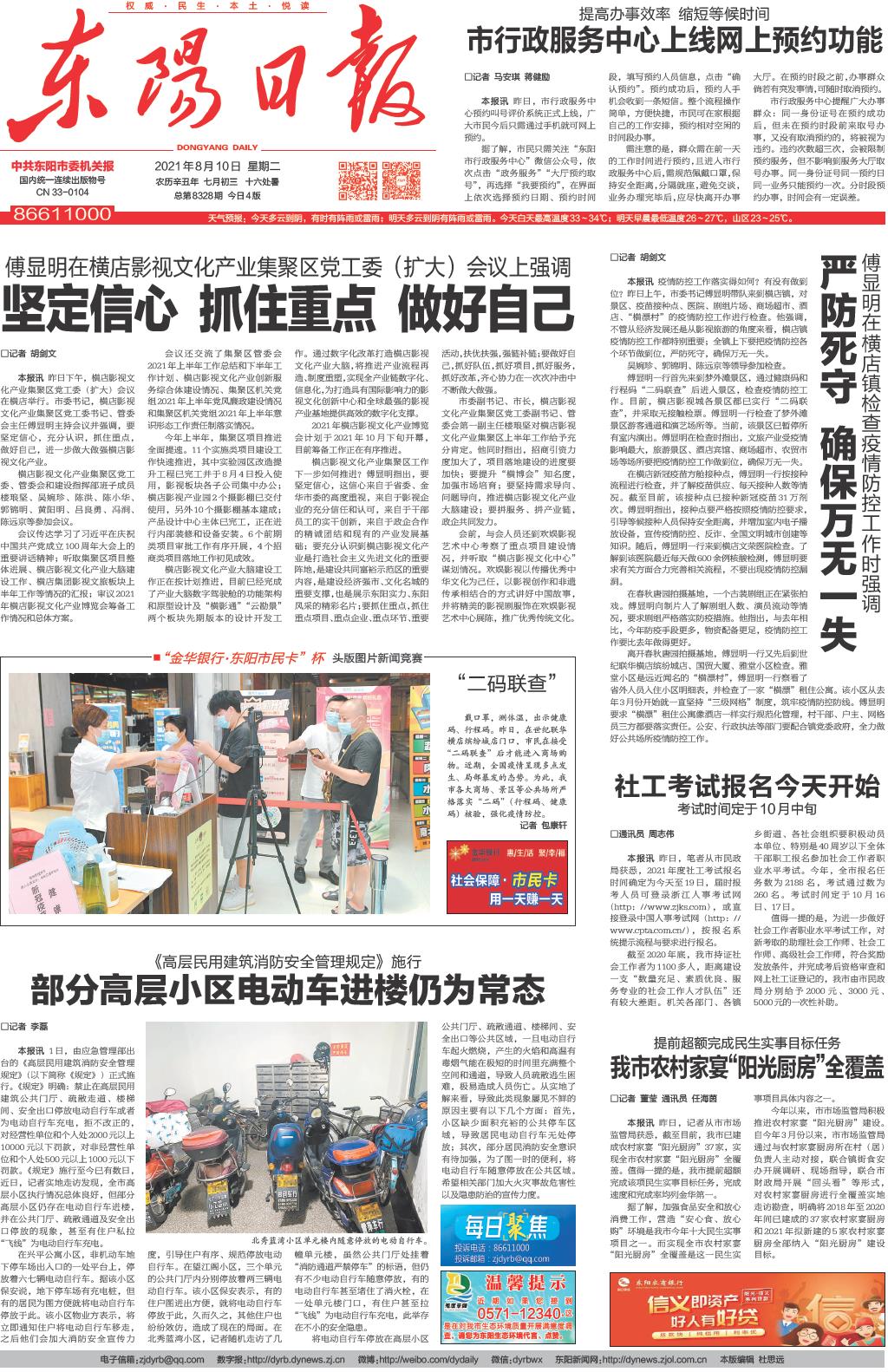 - 严防死守 确保万无一失 □记者 胡剑文 本报讯 疫情防控工作落实得如何?有没有做到位?昨日上午,市委书记傅显明带队来到横店镇,对景区、疫苗接种点、医院、剧组片场、商场超市、酒店、“横漂村”的疫情防控工作进行检查。他强