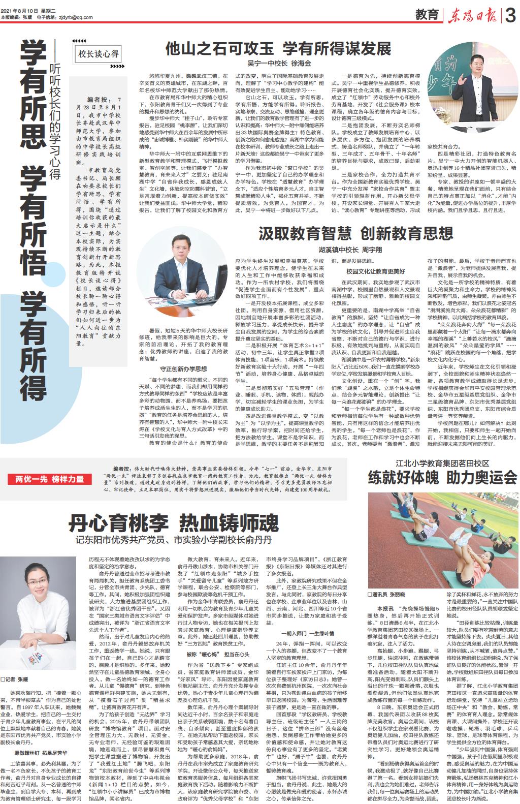 - 两优一先 榜样力量 编者按:伟大时代呼唤伟大精神,崇高事业需要榜样引领。今年“七一”前后,金华市、东阳市“两优一先”评选表彰了多位奋战在我市教育一线的教育工作者。为此,教育版推出“两优一先 榜样力量”系列报道,通过