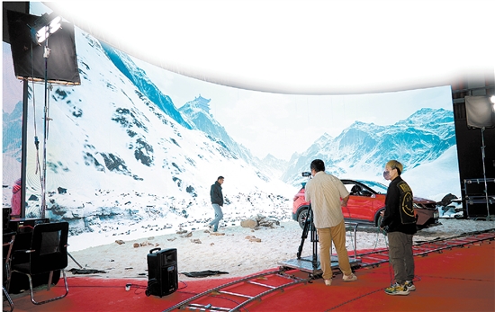 横店影视产业园绿电摄影棚内LED环幕拍摄演示。 通讯员 单冠定