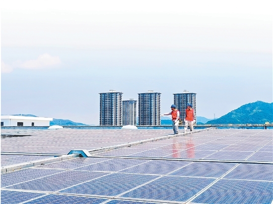 国网东阳供电公司员工在检查摄影棚顶光伏发电站。 通讯员 吴希腾