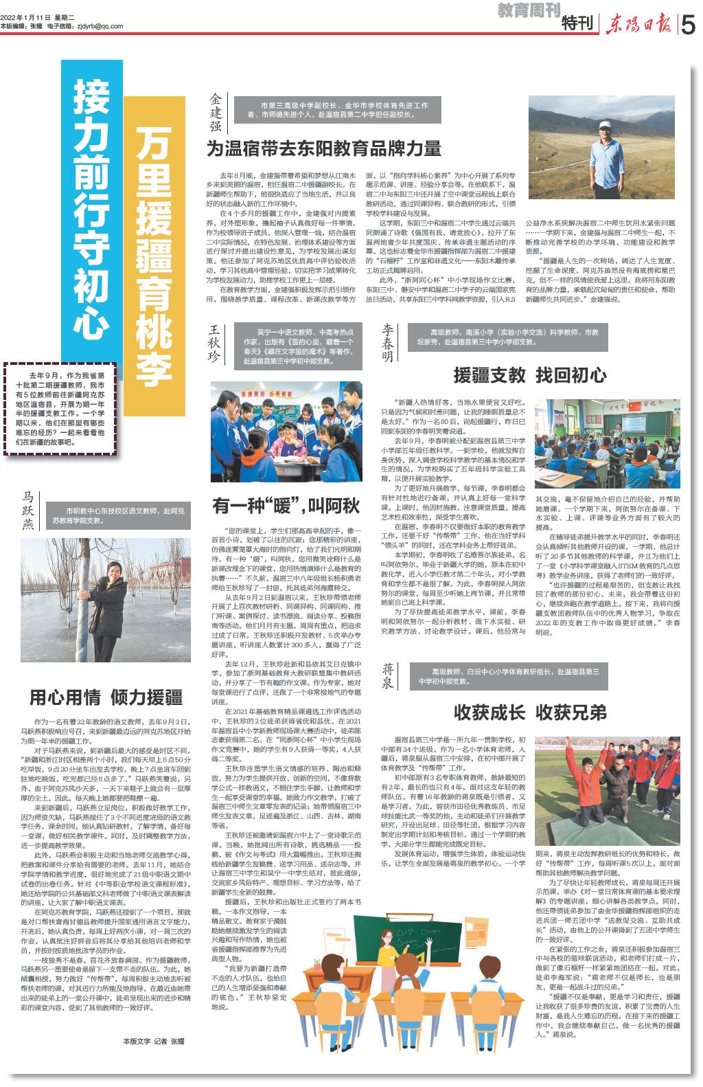 市第三高级中学副校长、金华市学校体育先进工作者、市师德先进个人,赴温宿县第二中学担任副校长。