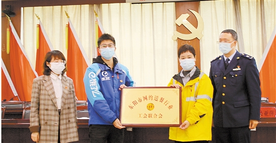市网约送餐行业工会联合会授牌仪式。