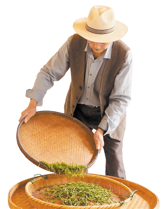 沈锡鹏在整理刚烘制的东白春芽半成品。