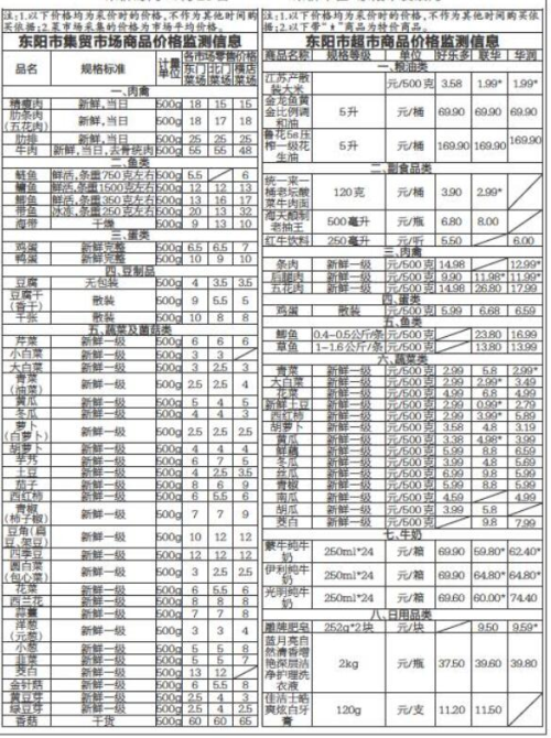 东阳市民生商品价格监测信息