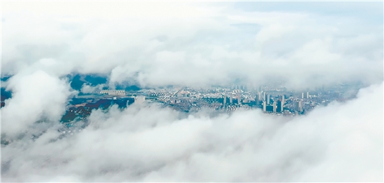 昨日清晨,经过一夜的雨水天气,我市出现了难得一见的云海景观,整座城市犹如仙境,蔚为壮观。