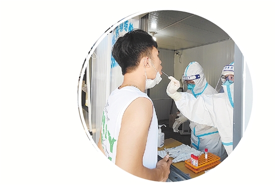 居民在白云街道方舱集中采样点采样。