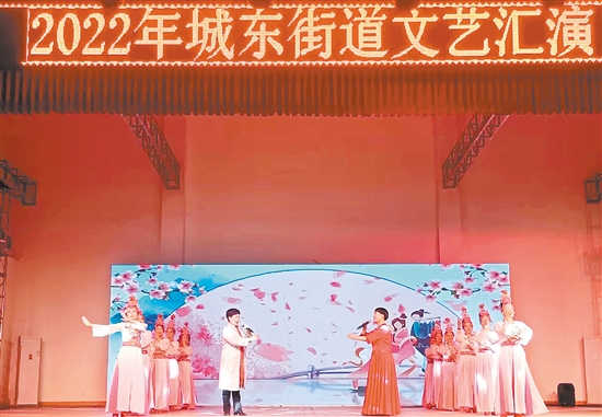 文艺汇演颂党恩 日前,“奋进新征程 建功新时代”2022年城东街道文艺汇演在堂鹤村文化礼堂举行。市职教中心演艺队、满江红演艺团、部分村(社区)演艺队等表演了腰鼓、舞蹈、婺剧等18个节目,抒发了对党、对祖国的深情祝福。