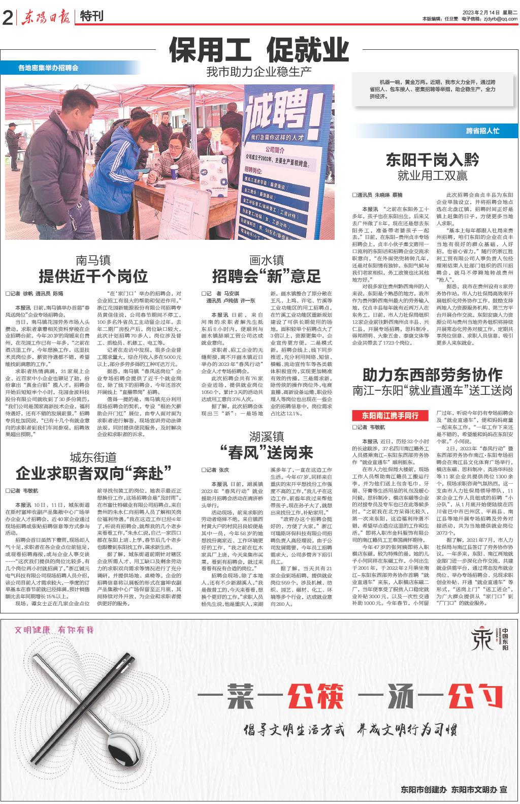 据了解,此次招聘会体现出三“新”:一是场地新。画水镇整合了原分散在王凡、上坞、许宅、竹溪等工业功能区的用工招聘点,在竹溪工业功能区重新规划建设了可供长期使用的场地,面积较单个招聘点大了3倍以上,资源更集中,企业宣传更方便。二是模式新。招聘会线上、线下同步推进,充分利用网络、短信、横幅、流动宣传车等各类载体积极宣传,实现更加精准有效的传播。三是需求新。除传统的操作岗位外,电商直播、高新设备运维、职业经理人等岗位也出现在一些企业的招聘信息中,岗位需求占比达12.1%。