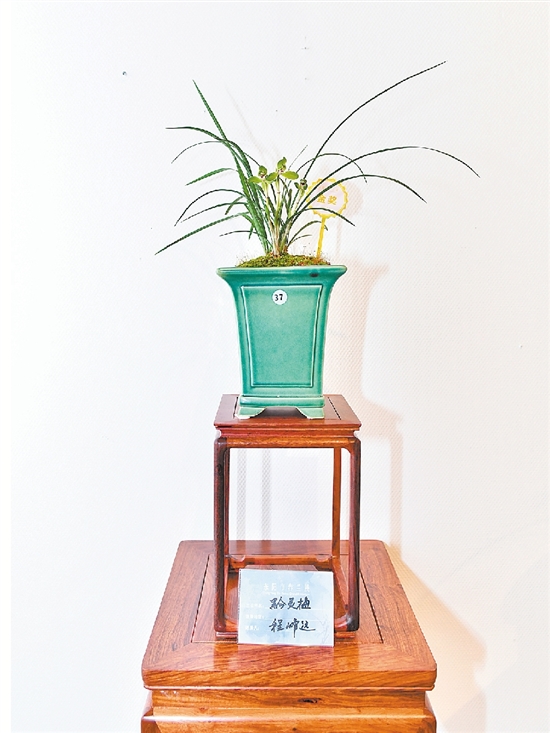 在春兰盆景展上,一盆盆精品兰花竞相展芳华。