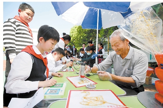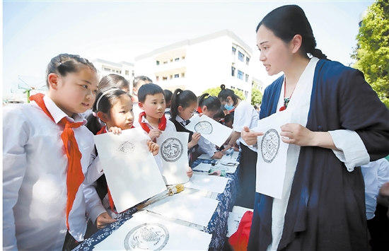 10日,吴宁第一小学举行了“校园科技节之‘非遗在身边 文化共传承’”活动。学校设置了陶艺、东阳竹编、拓印、糖画等项目,让学生在文化熏陶中感受科学的力量,在生动有趣的科学探究中深入对文化的体验与传承,在互动体验中感受非遗的独特魅力。 记者 胡扬辉 通讯员 尹艳