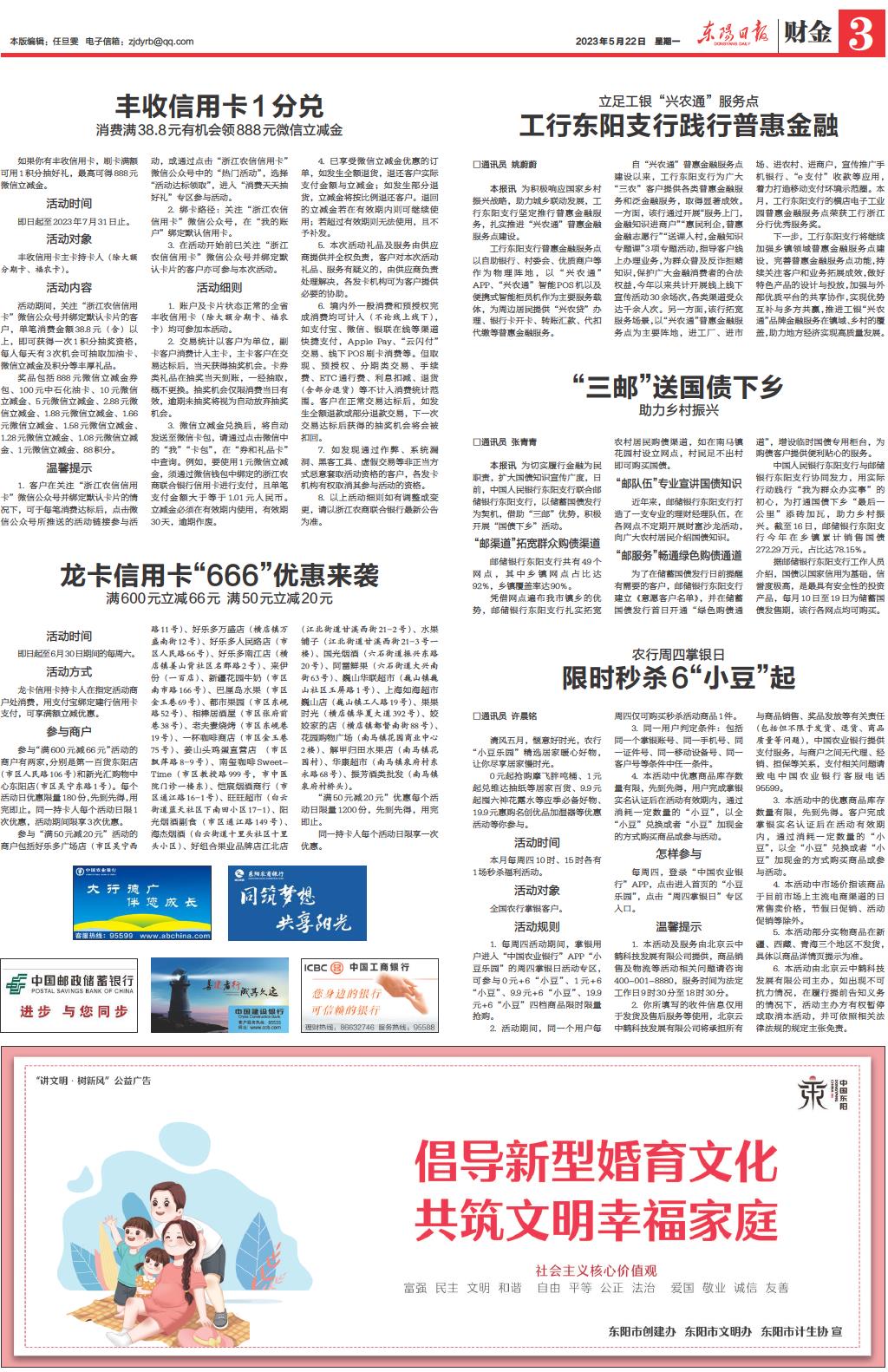 参与“满600元减66元”活动的商户有两家,分别是第一百货东阳店(市区人民路106号)和新光汇购物中心东阳店(市区吴宁东路1号)。每个活动日优惠限量180份,先到先得,用完即止。同一持卡人每个活动日限1次优惠,活动期间限享3次优惠。