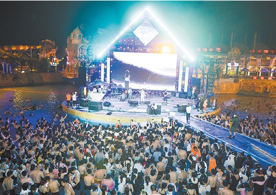 本报讯 9日晚,青春横店·水上音乐节首场在横店影视城梦幻谷水世界激情开唱。