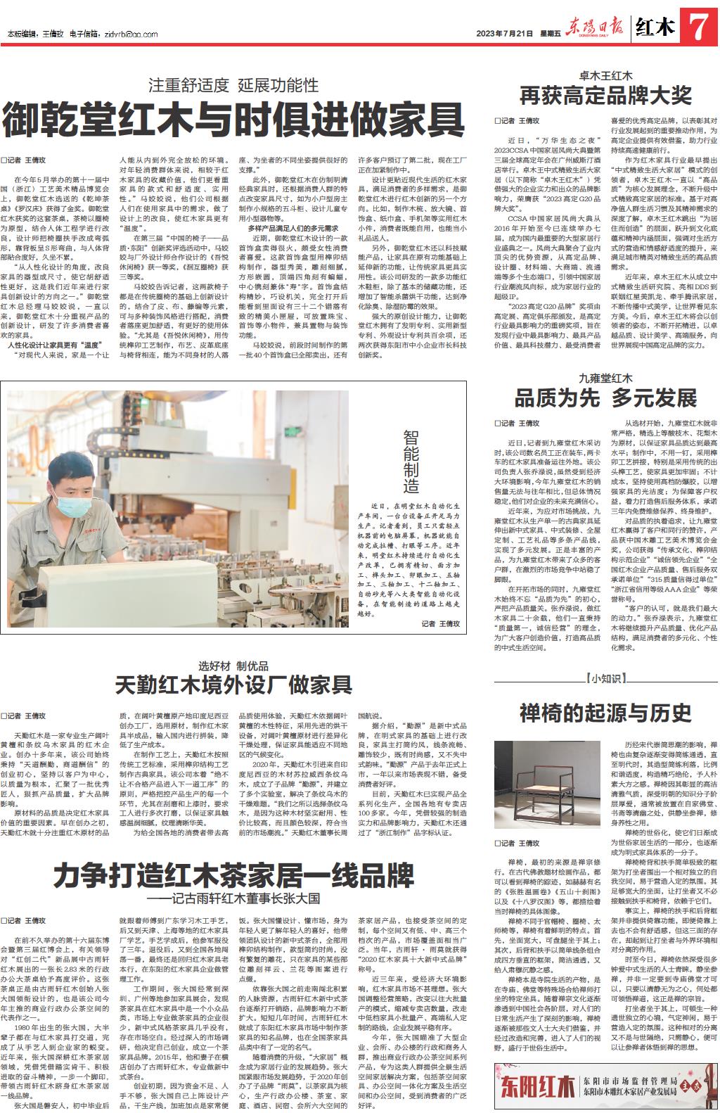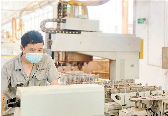 近日,在明堂红木自动化生产车间,一台台设备正开足马力生产。记者看到,员工只需轻点机器前的电脑屏幕,机器就能自动完成拉槽、打眼等工序。近年来,明堂红木持续进行自动化生产改革,已拥有精切、面方加工、榫头加工、卯眼加工、五轴加工、三轴加工、十二轴加工、自动砂光等八大类智能自动化设备,在智能制造的道路上越走越好。