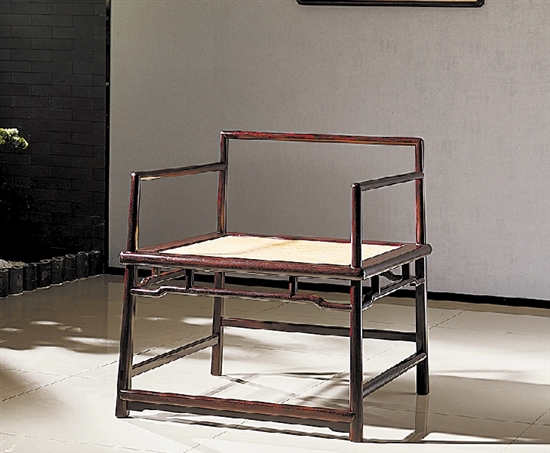 禅椅不同于官帽椅、圈椅、太师椅等,禅椅有着鲜明的特点。首先,坐面宽大,可盘腿坐于其上;其次,后背和扶手以简单线条组合成四方垂直的框架,简洁通透,又给人肃穆沉静之感。