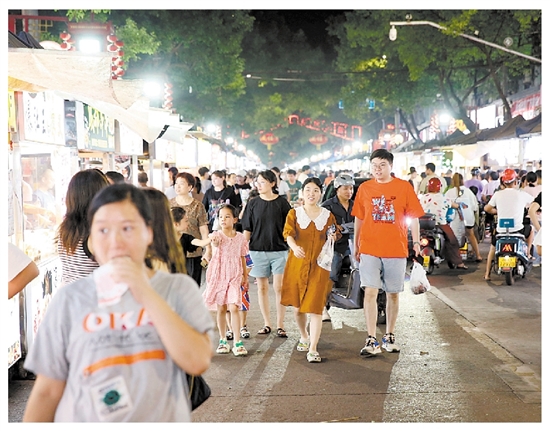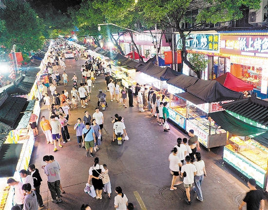 每当夜幕降临,振兴路夜市灯火通明,街上香气四溢,前来吃夜宵、买小商品、逛街的市民络绎不绝。振兴路商业街是省特色商业示范街之一,现有夜市摊位437个,摊主来自全国10多个省份。振兴路夜市给东城增添“烟火气”的同时,也给自由职业者、外来务工人员等带来新机遇。