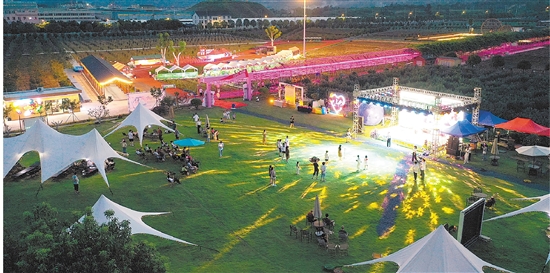 近日,一场以“‘七’待已久,‘夕’望是你”为主题的七夕脱单露营音乐节在南马镇花园村天香湾景区举办。水枪大战、灯光秀、烟花秀、网红市集、玩偶游园、脱单派对、乐队演出等丰富的活动,吸引了不少青年男女前来打卡。