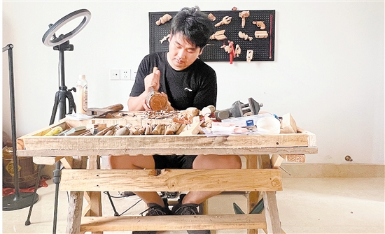 青龙偃月刀,绝世好剑,方天画戟……一件件外表冷酷的传统冷兵器,经过巍山镇上沧塘村村民应伟鹏的改版以及Q化,变成了放在女儿枕头下陪伴安抚的木制玩具;妻子徐赛南随手拍摄的相关创作视频,分享到抖音平台收获超亿次浏览量,300多万点赞,抖音账号3个月内涨粉十余万。近日,记者走进应伟鹏家中,寻找一系列Q版木雕“兵器”短视频走红网络的原因。