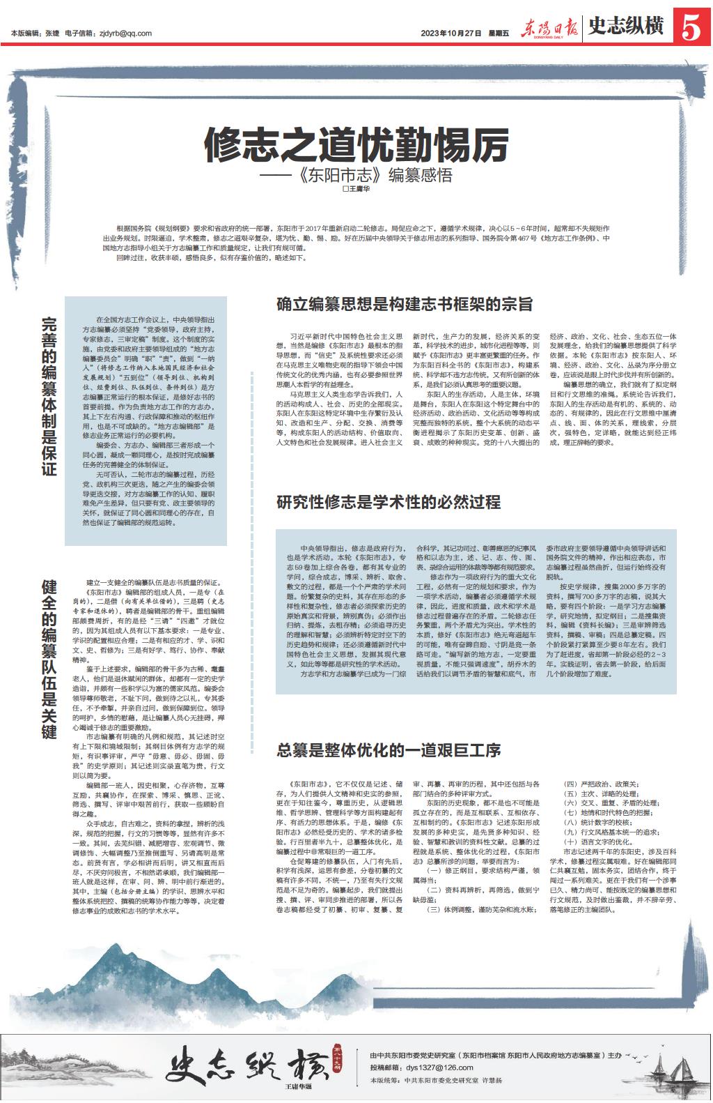 在全国方志工作会议上,中央领导指出方志编纂必须坚持“党委领导,政府主持,专家修志,三审定稿”制度。这个制度的实施,由党委和政府主要领导组成的“地方志编纂委员会”明确“职”“责”,做到“一纳入”(将修志工作纳入本地国民经济和社会发展规划)“五到位”(领导到位、机构到位、经费到位、队伍到位、条件到位)是方志编纂正常运行的根本保证,是修好志书的首要前提。作为负责地方志工作的方志办,其上下左右沟通、行政保障和推动的枢纽作用,也是不可或缺的。“地方志编辑部”是修志业务正常运行的必要机构。