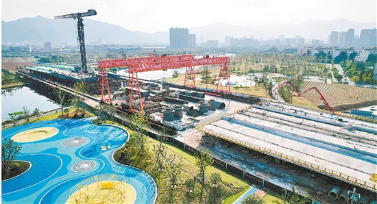不负秋日好时光。10月30日,博士大桥项目施工现场,各项工程正紧锣密鼓进行中。据了解,博士大桥全长2.4公里,其中桥梁总长度为1.745公里,现已完成塔吊安装,标志着大桥进入主塔安装阶段。 记者 吴意琼