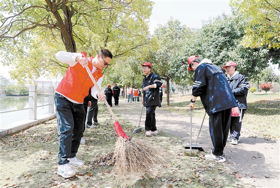 20日,花园高级中学师生来到花园村方店小区三宝湖畔,通过捡拾垃圾、处理杂物、清扫落叶等开展志愿服务活动,让乡村人居环境更加干净整洁。三月是全国学雷锋活动月,日前,该校师生还来到花园老年公寓,陪老人聊天、表演才艺。