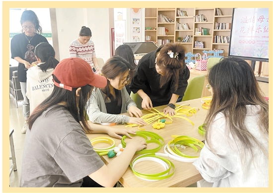 11日下午,白云街道十里头社区党群服务中心,温情满满,笑语声声。同悦社工联合白云街道社会组织服务中心开展“温情母亲节、花样乐编织”活动,陪伴社区内的妈妈们过节。随着巧手在织带间穿梭,特色亮眼的编织包便诞生了,让妈妈们在手工制作中感受节日快乐。
