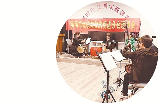 市婺剧促进会湖溪镇分会的婺剧乐队在排练中