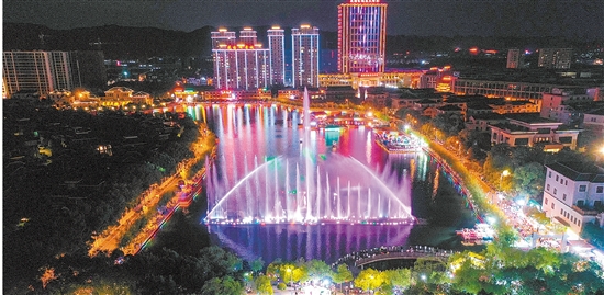16日晚8时左右,南马镇花园村吉祥湖畔依旧人声鼎沸,绚丽的夜景让村民、游客流连忘返。眼下,吉祥湖周边游乐场、美食街、夜市等经营火爆,露天舞池、群众大舞台、职工活动中心等文化娱乐场所热闹非凡。围绕夜购、夜食、夜游、夜娱等主题,花园村推出多项活动活跃夜经济。