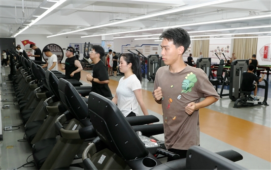 巴黎奥运会再次掀起健身热。5日晚,南马镇花园村职工活动中心,村民和花园集团员工在空调房里享受各种免费健身娱乐项目。
