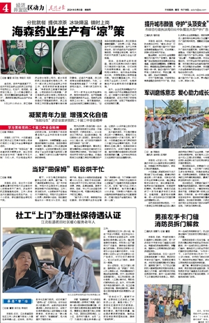 在训练场边,志愿者们备好了解暑药品和降温物资,随时关注着场上学生们的状态。一看到有学生身体不适,志愿者们第一时间上去搀扶,引导休息,将一杯杯消暑茶送至学生手中,提供刮痧等防暑保健服务。在训练休息间隙,大家还将饮用水主动送至每个班级训练所在地,为新生们装满水壶。