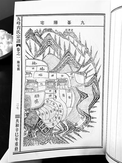 《九峰曹氏宗谱》中的九峰山与五度山村落示意图