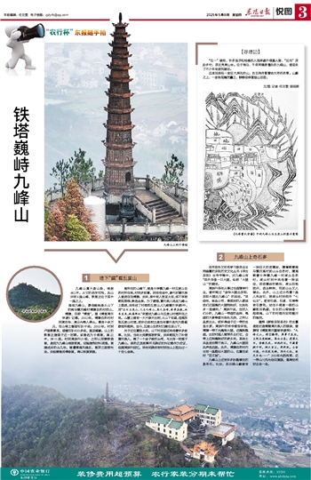 九峰山上还有许多妙趣横生的象形石。比如,东北侧山巅曾有一块巨大的老鹰岩,鹰嘴朝着南马镇双溪村前山头自然村,鹰尾朝着千祥镇九峰一村凌头自然村。凌头村民中流传着一种说法,因老鹰岩的朝向,凌头田地肥沃,适合耕种,而前山头文人辈出。此外,山上还分布着7座人形岩石,被凌头村民视作“七仙女”,更有石猪、石桌、石椅等奇石景观。站在千佛塔一侧的山巅极目眺望,长长的山脊线像一根细绳,山下的村落则如同铺开的渔网。