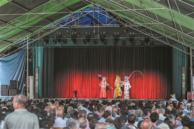 6月17日,浙江武义后陈村的百姓在观看送戏下乡演出。