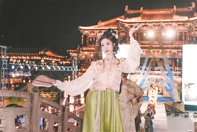 9日晚,浙江横店影视城与山东曹县人民政府携手打造的“影视国风大赏”品牌活动在清明上河图景区华丽上演,曹县数家头部汉服品牌携上百套匠心新品破幕而来,给游客带来了一场融合影视IP、顶级华服工艺与沉浸式文旅体验的盛宴。