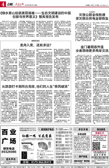 东阳市融媒体中心出版 地址:东阳市学士北路6号 电话:89326986(广告中心) 邮编:322100 零售价:0.85元/份 本期印数:37200份 印刷:东阳市传媒集团有限公司 电话:86691148 投递服务热线:86643520