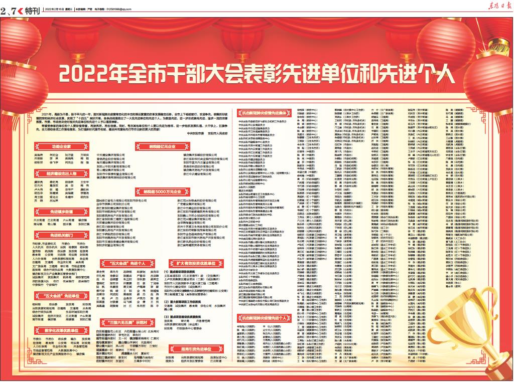 - 经济建设杰出人物 虞标亮 蒋红亮 邵徐君 王世平 任元月 葛战军 吴 华 梅 伟 卢大伟 张 健 华学严 龚松林 胡迅华 陈建斌 吴海潮 李