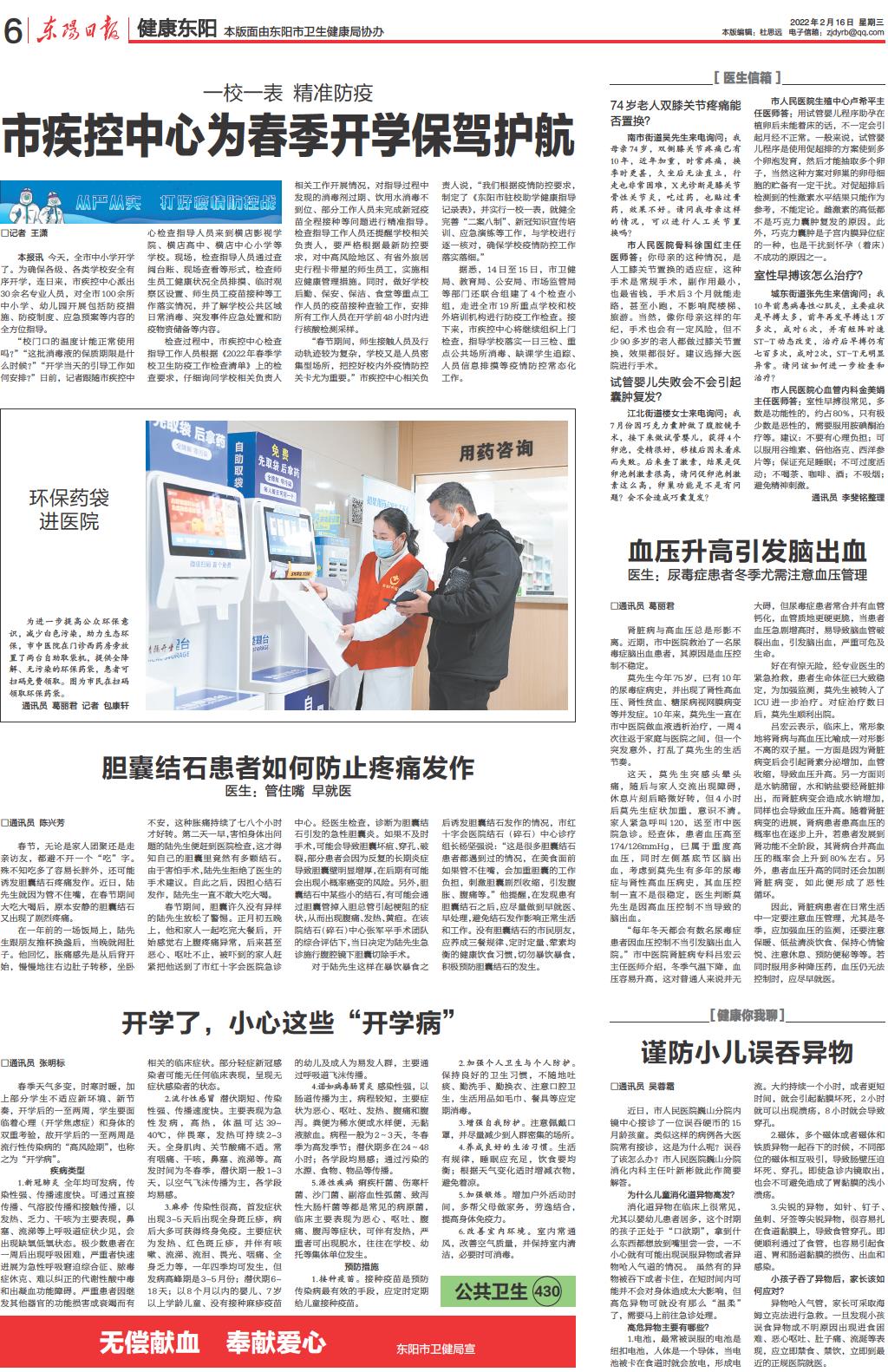 - 开学了,小心这些“开学病” □通讯员 张明标 春季天气多变,时寒时暖,加上部分学生不适应新环境、新节奏,开学后的一至两周,学生要面临着心理(开学焦虑症)和身体的双重考验,故开学后的一至两周是流行性传染病的“高风险期”,也