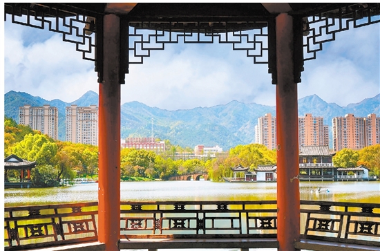 站在西山公园八角亭内向南眺望,美丽的秋景让人心旷神怡。