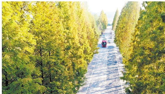 巍山镇金鑫村仁山自然村附近的“象义线”上,两旁大树已渐渐泛黄,透着浓浓的秋意,格外壮美。