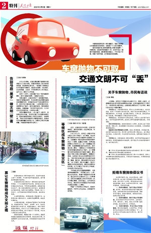 - 车窗抛物不可取交通文明不可“丢” 车窗抛物是常见的一种交通陋习,驾驶人和乘客从车里抛掉垃圾的同时,也抛掉了个人的文明素养。 皱巴巴的面巾纸、废弃的塑料瓶、未熄灭的烟蒂……车辆疾驰,这些废弃物被随手一扔,在空中划出一道道不