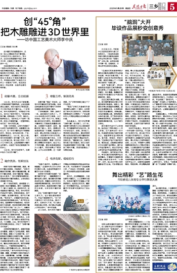 - 创“45°角” 把木雕雕进3D世界里 □记者 蔡晓莉 张永青 在木雕艺术的璀璨星空中,总有一些人以精湛技艺和不懈创新,为传统艺术注入新的活力。李中庆,这位来自湖溪镇的中国工艺美术大师、正高级工艺美术师,便是其中一位。 东阳和潮