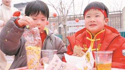 本报讯 “快来买呀,刚做好的杨梅粿”“我夹到3颗豆子啦,又能得到1枚印章”……4日,江北实验幼儿园飘着棉花糖的甜香、麻糍的糯香,耳畔满是孩子们清脆的吆喝与欢笑,一场热闹的“食园节”,让孩子们在吃喝玩乐中迎来寒假。